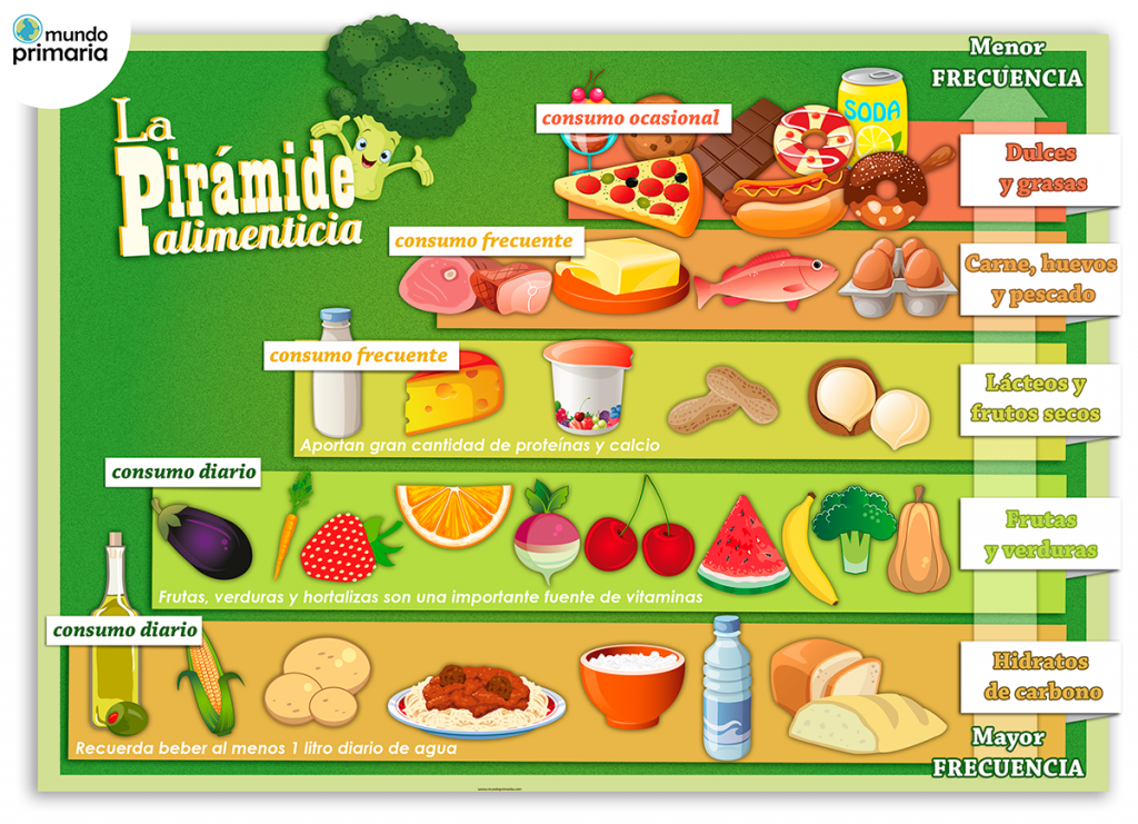 Grupo Gesfomedia S.L. (s.f.). Mundo Primaria. Recuperado el 27 de Noviembre de 2019, en https://www.mundoprimaria.com/infografias-imagenes-educativas/piramide-alimenticia-ninos